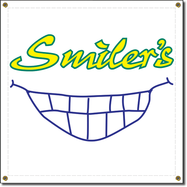 Printed on banner material, seamed edge and grommets