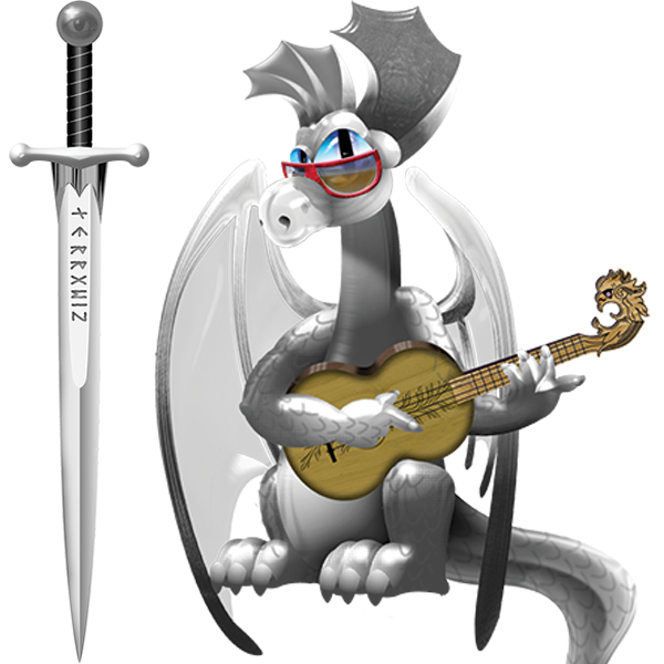 Dergie with lute and sword from Wizard Sword for Otter Creek Press, 2001